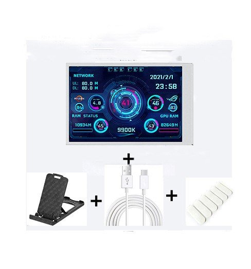 Package 3: Screen +Type-C data cable + stand +usb four-port spliter +Type-C charging base + Elbow data cable type-c+4PIN motherboard transfer cable 9 pins